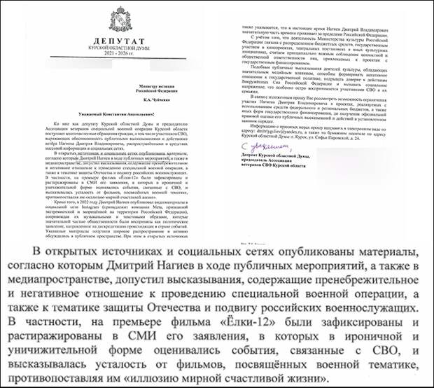 Депутат Курской облдумы и участник штурма Суджи Дмитрий Гулиев просит Минюст и Минкульт внести шоумена в реестр иноагентов России. Скриншот страницы соцсети VK