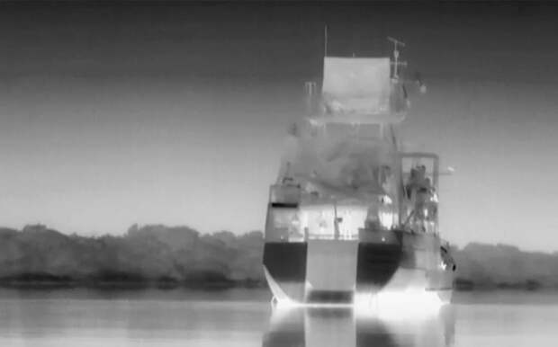 Потопление среднего разведывательного корабля "Симферополь" российским БЭКом в устье Дуная. Кадры объективного контроля.