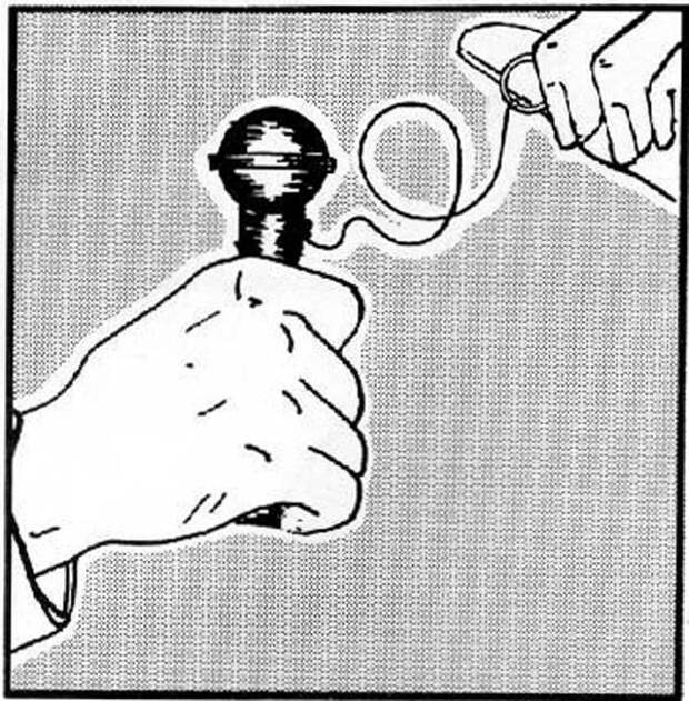 Назначение проволоки было простым и понятным. Она выполняла функции гарроты. С ее помощью диверсантам OSS предлагалось бесшумно нападать на часовых противника и душить их. При этом корпус и кольцо выполняли функции рукояток, обеспечивая приемлемое удобство.
