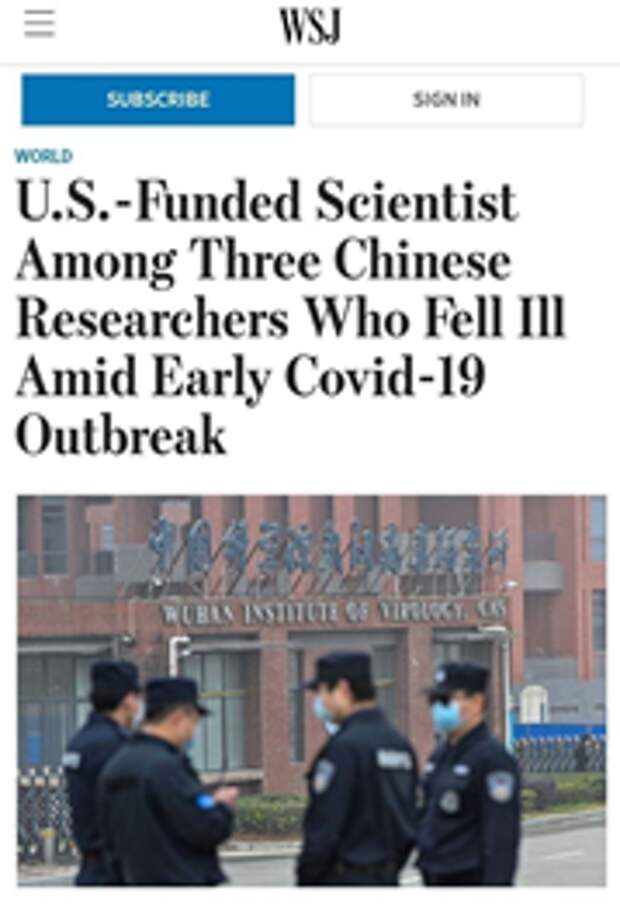 «Незамеченная» сенсация от Wall Street Journal (20.06.2023): по словам официальных лиц США, ученые Уханьского института вирусологии, работавшие над коронавирусом и заболевшие неустановленной болезнью во время первоначальной вспышки Covid-19, финансировались правительством США