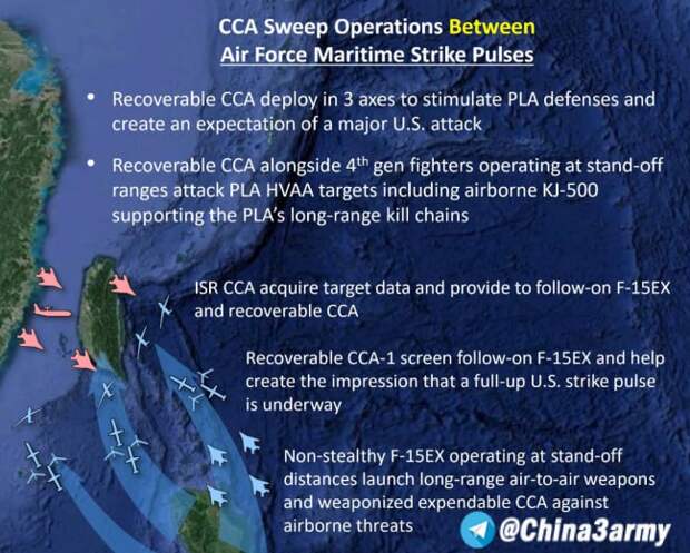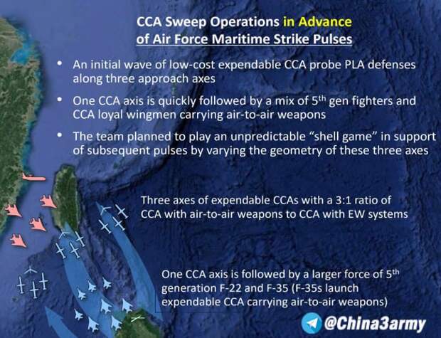 Американский аналитический центр Mitchell Institute for Aerospace Studies выкатил (https://www.mitchellaerospacepower.org/app/uploads/2025/05/MI-CCA-Logistics-TTX-Executive-Summary.pdf) стратегический план: США смогут захватить господство в небе над Тайванем, применив всего 32 истребителя F-35 и 32 F-15EX для поддержки стратегических бомбардировщиков.