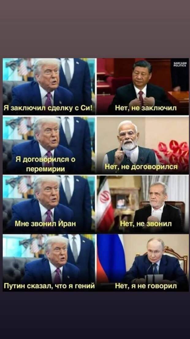 И тут он заявляет, что «Целью были ядерные объекты, мы не ставим своей задачей смену режима в Иране». А буквально через несколько часов строчит в соцсетях посты про «нужно сменить режим в Иране»!